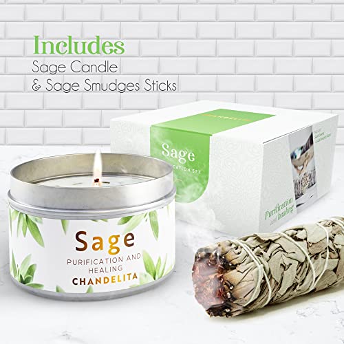 Deze geurkaars van sojawas met natuurlijke etherische olie helpt bij het verbranden van slechte energieën en bevordert meditatie en ontspanning. Met een brandduur van 33 uur en inclusief verse saliebundel voor een authentieke ervaring.