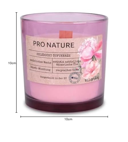 Geniet van de wilde rozengeur met deze duurzame geurkaars van koolzaadwas, perfect voor een gezellige sfeer. Met een brandduur van 40 uur en een uniek houten lont voor een knisperend geluid.