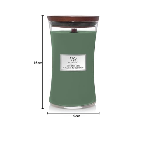 Geniet van de rustgevende geur van Mint Leaves & Oak met deze luxe WoodWick geurkaars. Met een brandtijd tot wel 130 uur en een knapperende lont voor een gezellige sfeer, is deze kaars perfect voor elke gelegenheid.