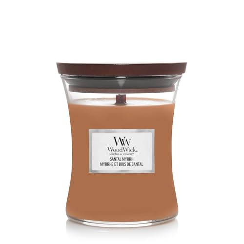 Geniet van de warme en exotische geur van Santal Myrrh met deze medium WoodWick geurkaars, die tot wel 60 uur brandtijd biedt. De unieke houten lont creëert een knapperend geluid, waardoor elke sfeer extra gezellig wordt.