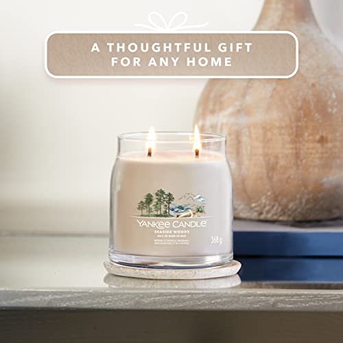Geniet van een unieke geurervaring met de Yankee Candle Seaside Woods. Deze stijlvolle sojawaskaars met dubbele lonten biedt een schone verbranding en een heerlijke mix van drijfhout en citrus voor een ontspannen sfeer.